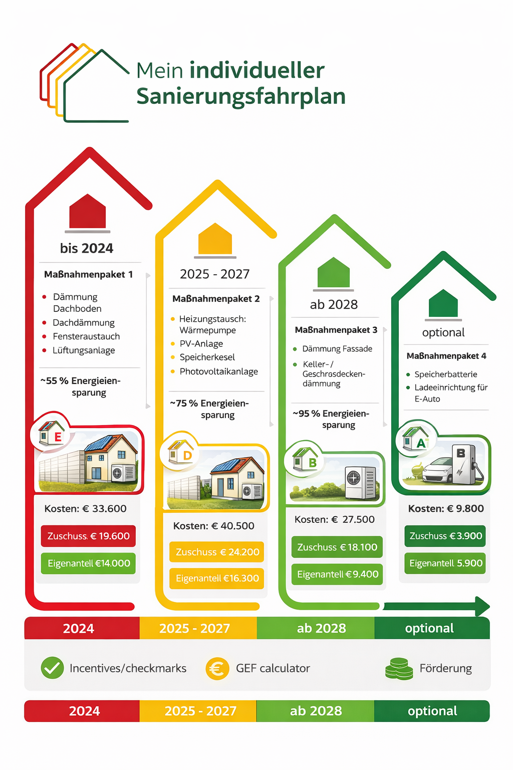 Der individuelle Sanierungsfahrplan zeigt Ihnen einen strukturierten Weg zur energetischen Verbesserung Ihres Gebäudes, schrittweise, sinnvoll und wirtschaftlich.